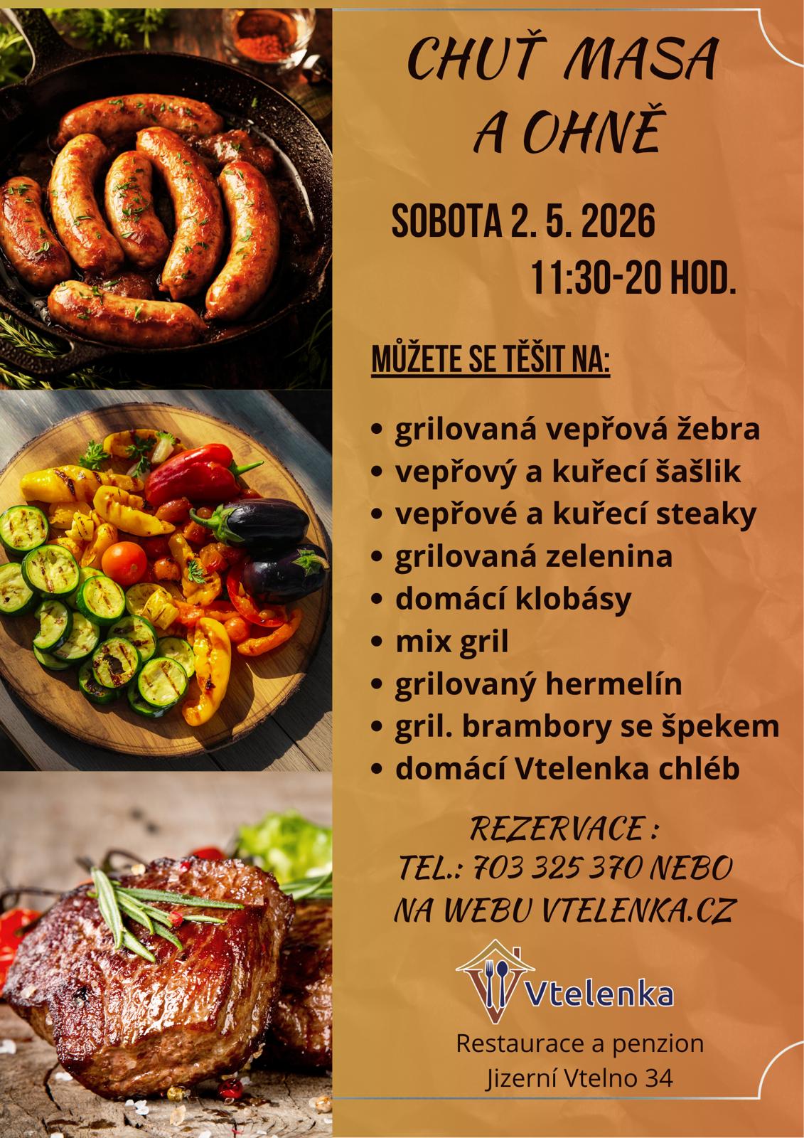 Přijďte s přáteli i rodinou užít si skvělou atmosféru, vůni grilu a nezapomenutelné chutě. Těšíme se na vás ve Vtelence!